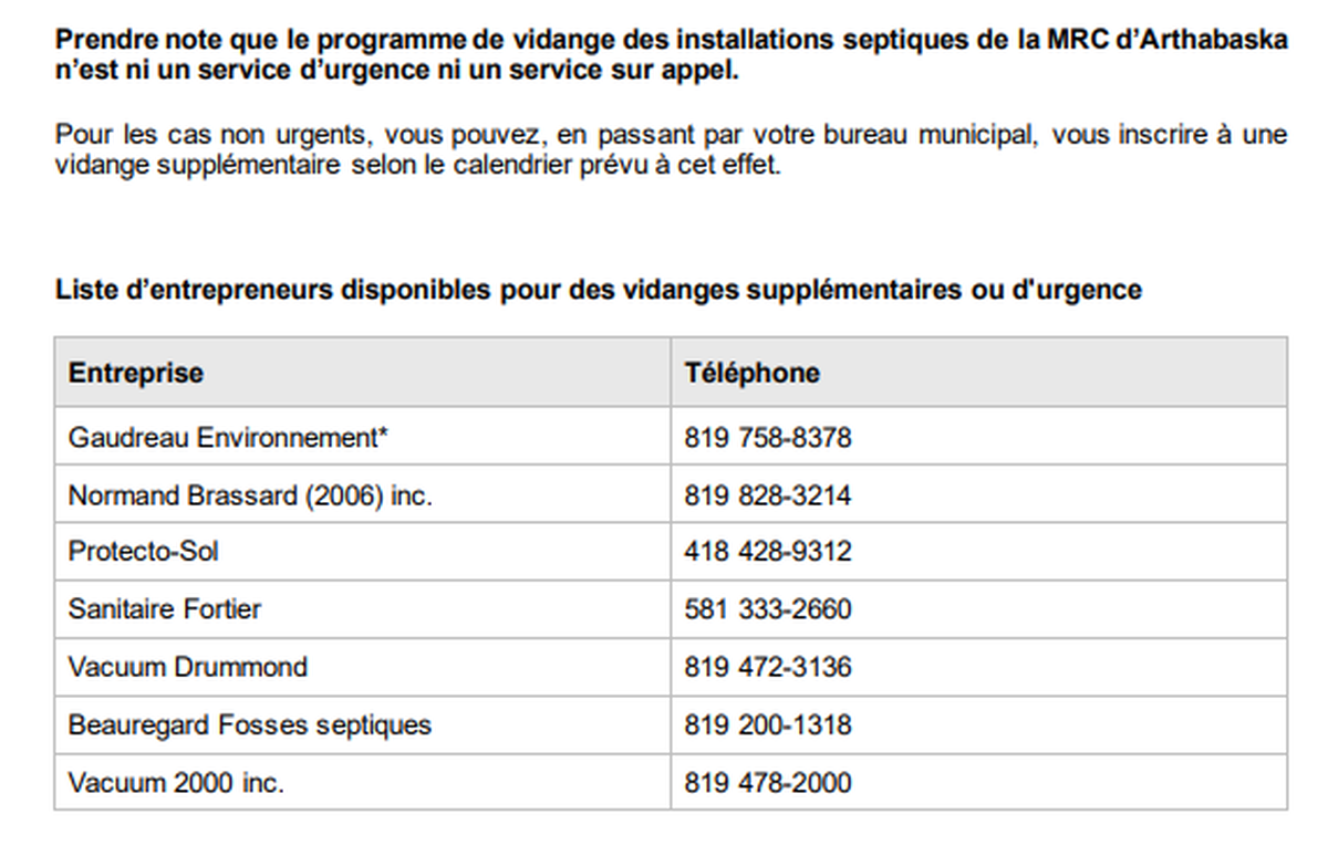 Pour obtenir la semaine de la vidange de votre fosse septique